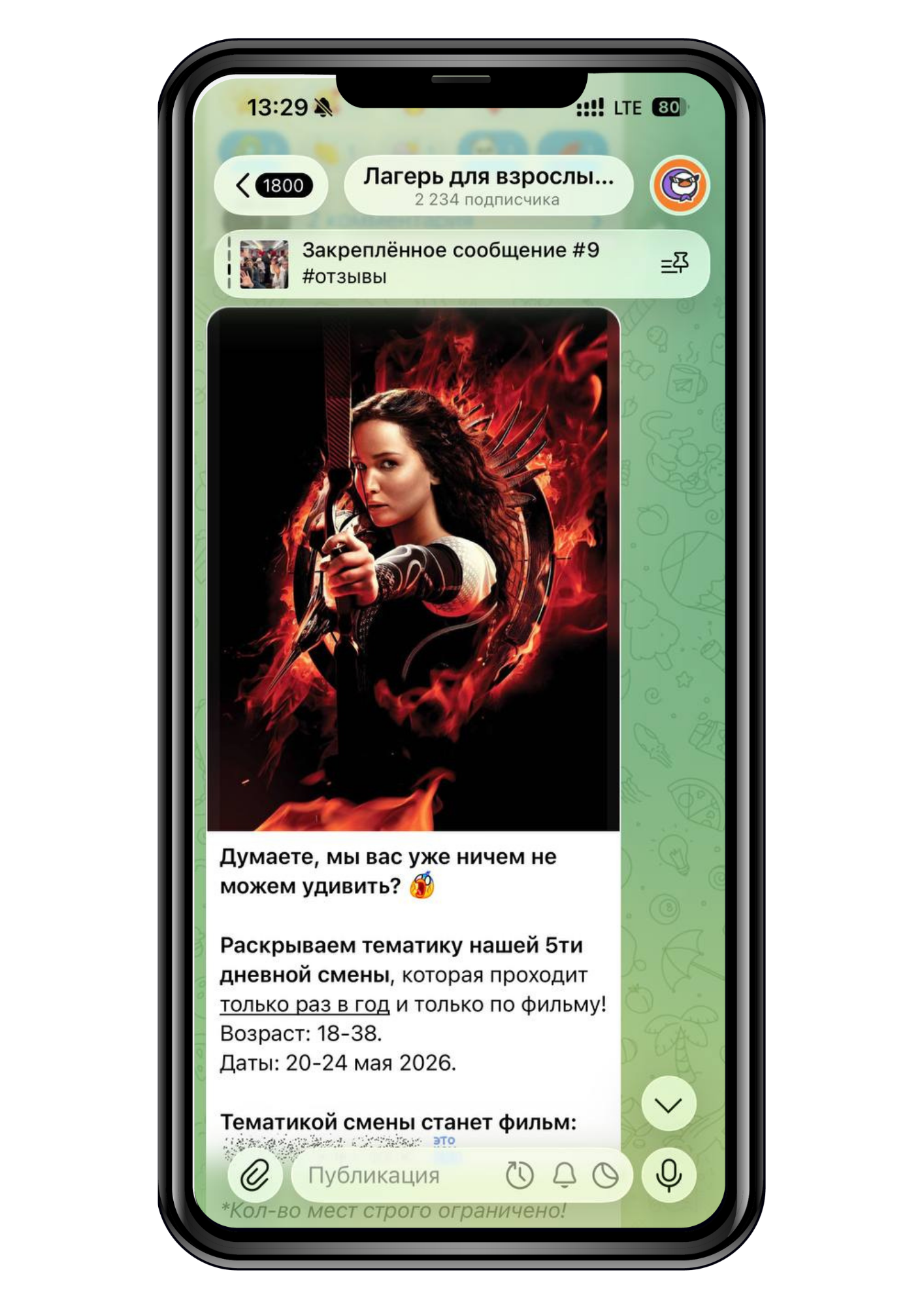 Уникальная 5ти дневная смена в тематике фильма, которая проходит только 1 раз в год! Проведем игры, которых еще ни разу не было, выделим время на работу участникам.
